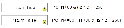 int foo(int i1, int i2) { int x = i1; int y = i2; if (x > 80){ x = y * 2; y = 0; if (x == 256) return True; } else{ x = 0; y = 0; } /* ... */ return False; }